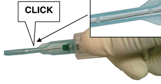 6. La operación de cierre termina después de escuchar "clic" y comprobar visualmente el bloqueo de la aguja.