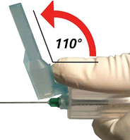 2. Después de retirar la tapa, para facilitar la extracción de sangre, es posible girar el dispositivo de seguridad tomándolo cerca de la conexión con el soporte.